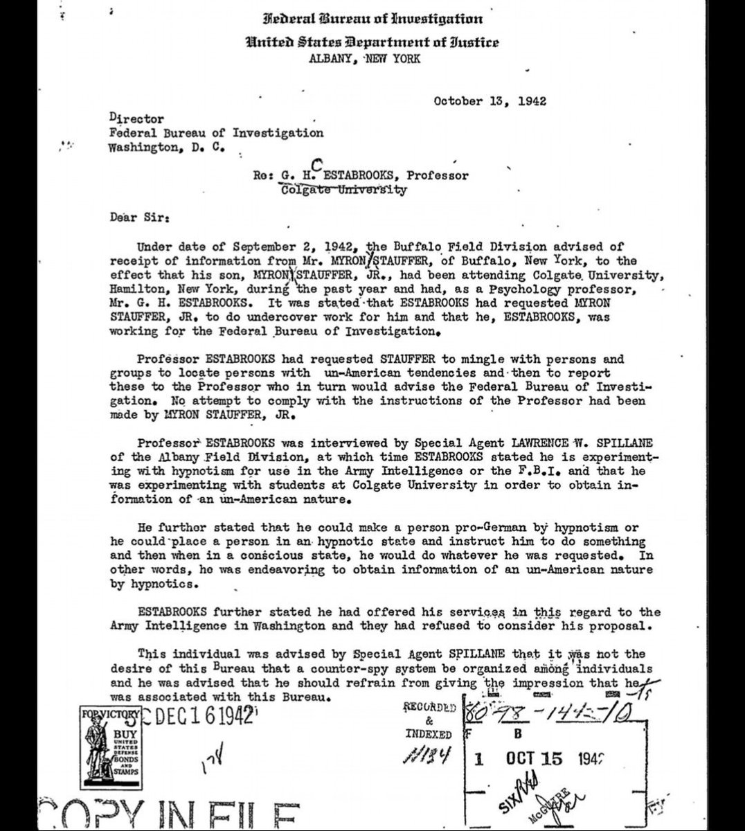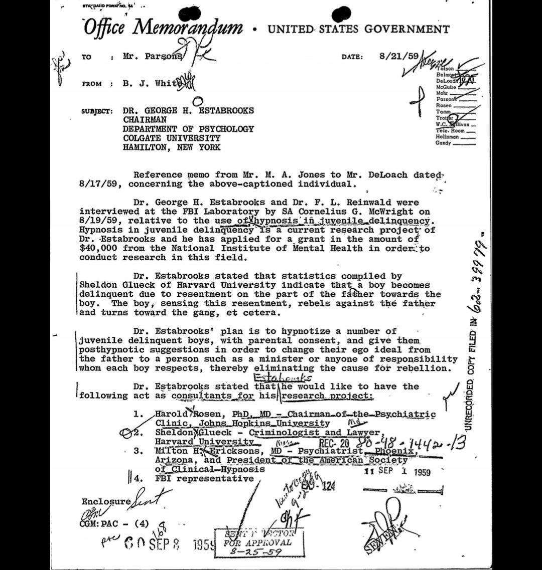 Further possible affinities arise when one looks at George Estabrooks: a Canadian-American psychologist who was a professor in Upstate NY (where NXIVM is based, although not until years later) and who claimed to have worked at various points for various 3-letter groups.pic.twitter.com/6siGHY3tpe