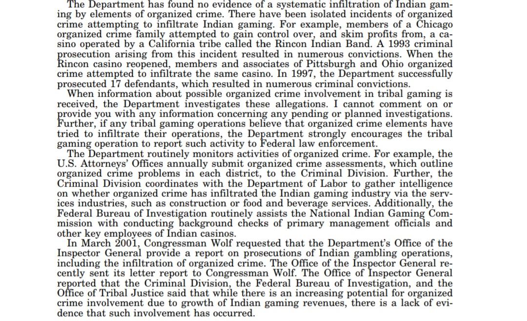Bruce Ohr in front of the Senate in 2001 saying Justice Dept had no evidence organized crime was infiltrating Indian casinos.pic.twitter.com/1mxxdE05hc