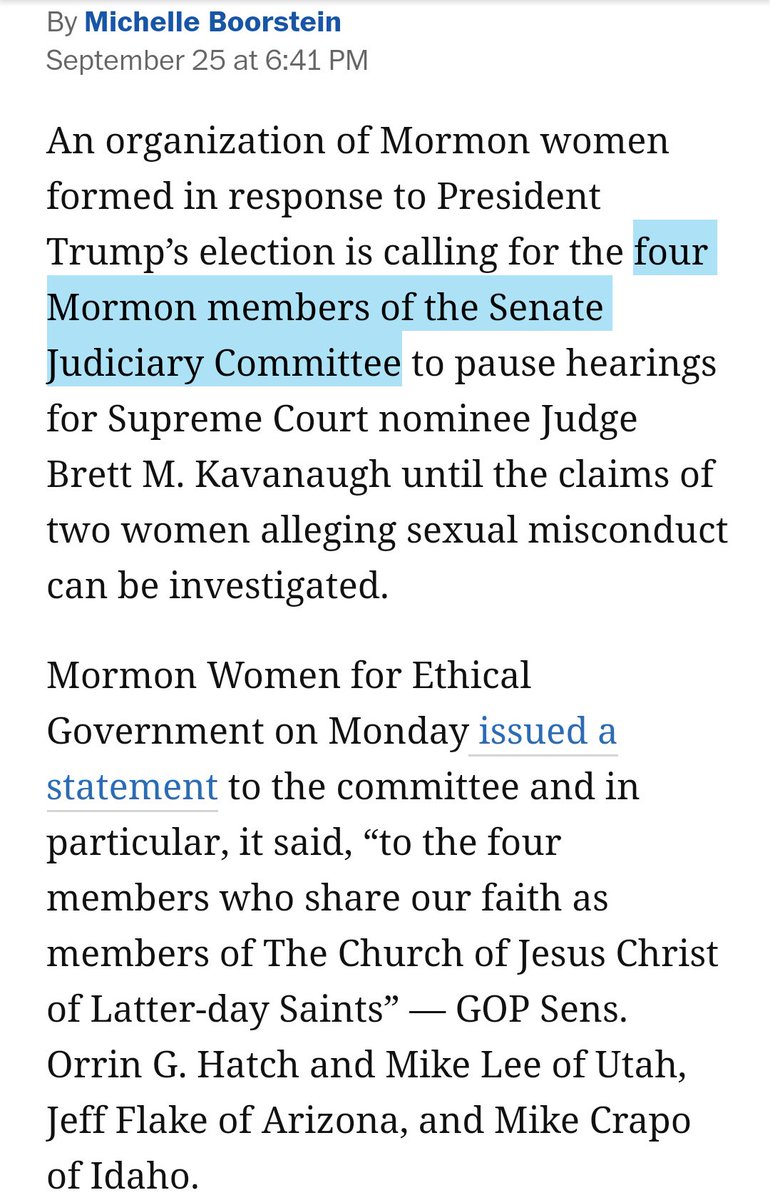 There are four mormons on the tiny judiciary committee? Their % of the overall population is tiny. WTH are the stats odd of that??