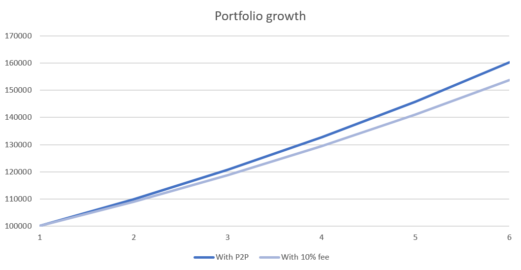 $ATOM with@p2pvalidator for 5 years with annual compounding will result in ~6,5% surplus comparing with median commission rate of 10% in@Cosmos