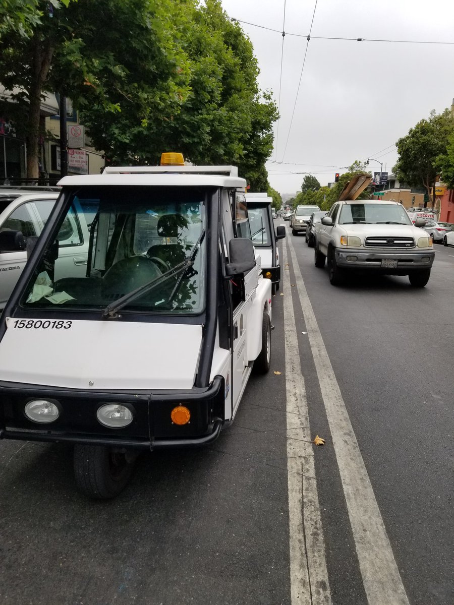 This is two SFMTA officers parked in the Valencia St. bike lane. They weren't writing tickets. They were picking up lunch.pic.twitter.com/gyfYxzrsPB