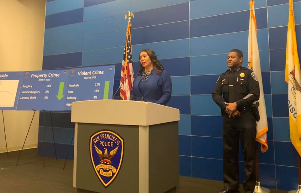 Today I joined @SFPD and @SFPDChief to announce our year end crime stats for 2019. We saw encouraging drops in violent crime, with homicides reaching the lowest level since 1961. We also saw a 4% reduction in property crime, though we know we still have a lot of work to do.pic.twitter.com/I8H14bXZlX