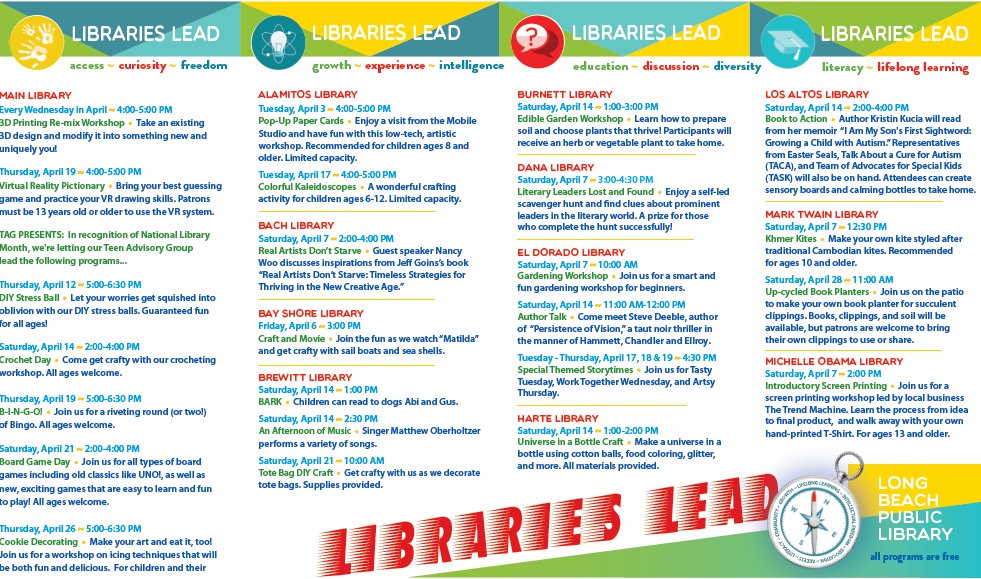 Here are some fun events to help by @LBCityLibrary!#NationalLibraryMonth
