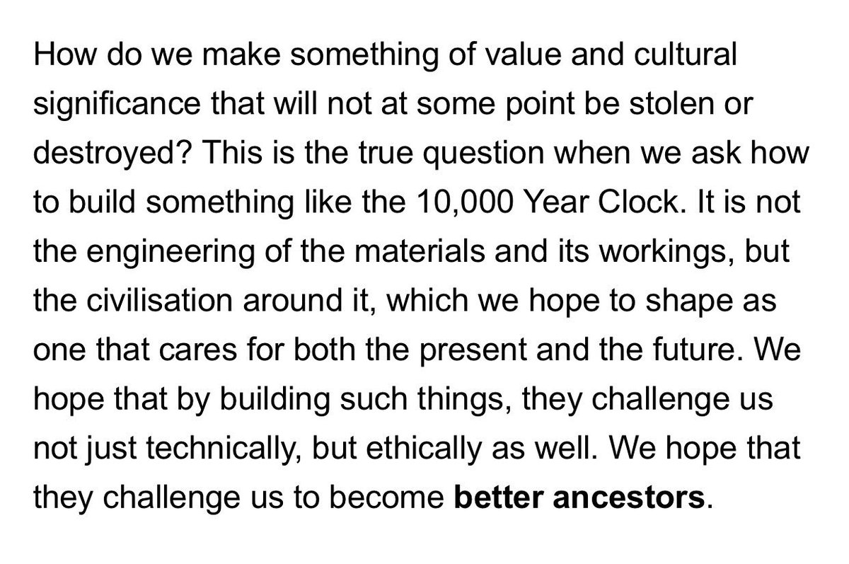 “The idea is to create a provocation large enough in both scale and time that, when confronted by it, we have to engage our long-term future.” Amen