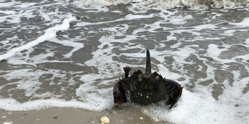 Stranded horseshoe crab with one of its “pusher legs” visible in the image, taken on Day 2 of our Global