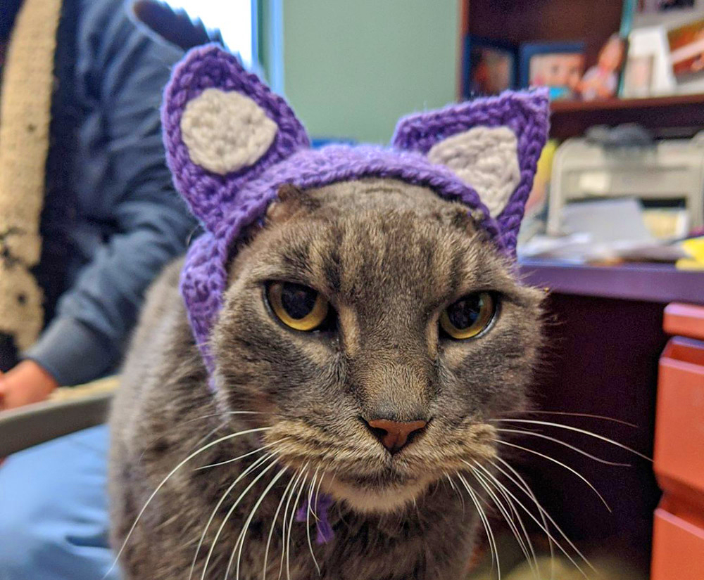 She had no ears due to an infection so a worker at the Humane Society in Wisconsin knitted a pair for her. Her name is Lady and she just got adopted.pic.twitter.com/5U2eMYG61f