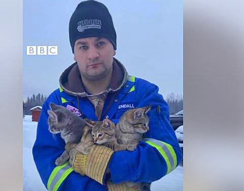 Real men love cats---and rescue kittens frozen in the snow like this man did in Canada.