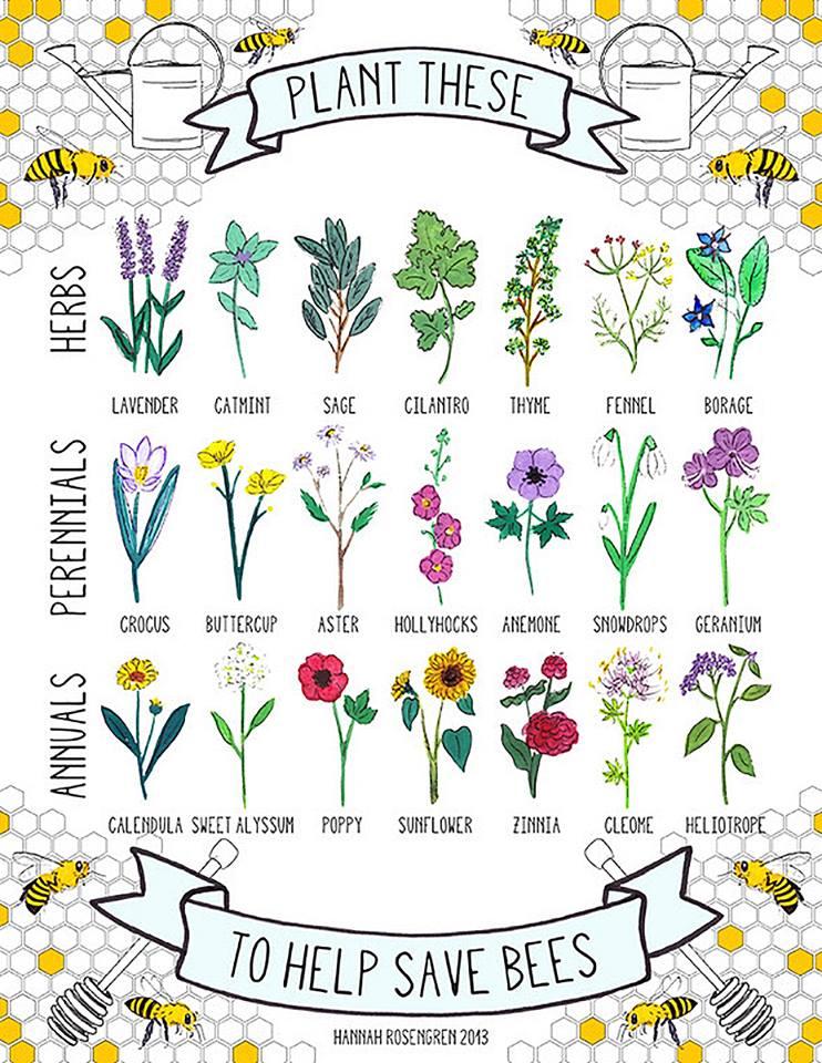 Research bee-friendly plants that are native to your area and plant them. "Plant These to Help Save the Bees" is illustrated by Hannah Rosengren. She is a freelance illustrator in Maine and you can check out more of her work here: http://www.hannahrosengren.com/ pic.twitter.com/9VsjHL2JS5