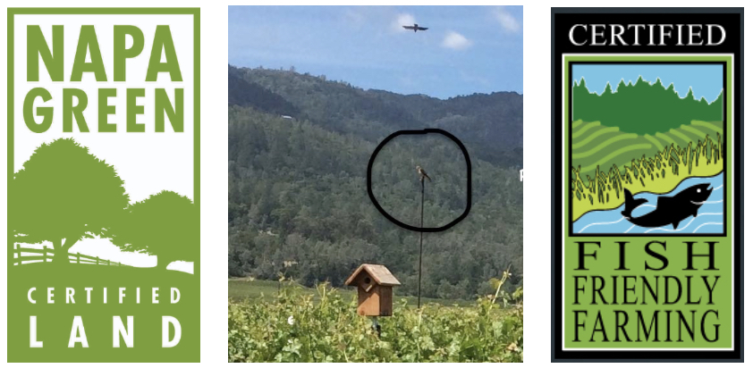 Cathy and William have been farming Kronos Vineyard sustainably for a quarter century. When they purchased Sunbasket Vineyard in 2015 they began to do so there as well. Both vineyards are Napa Green Land and Fish Friendly Farming certified. Zoom in on the red-tailed hawk below!pic.twitter.com/AdKDVw8WUz