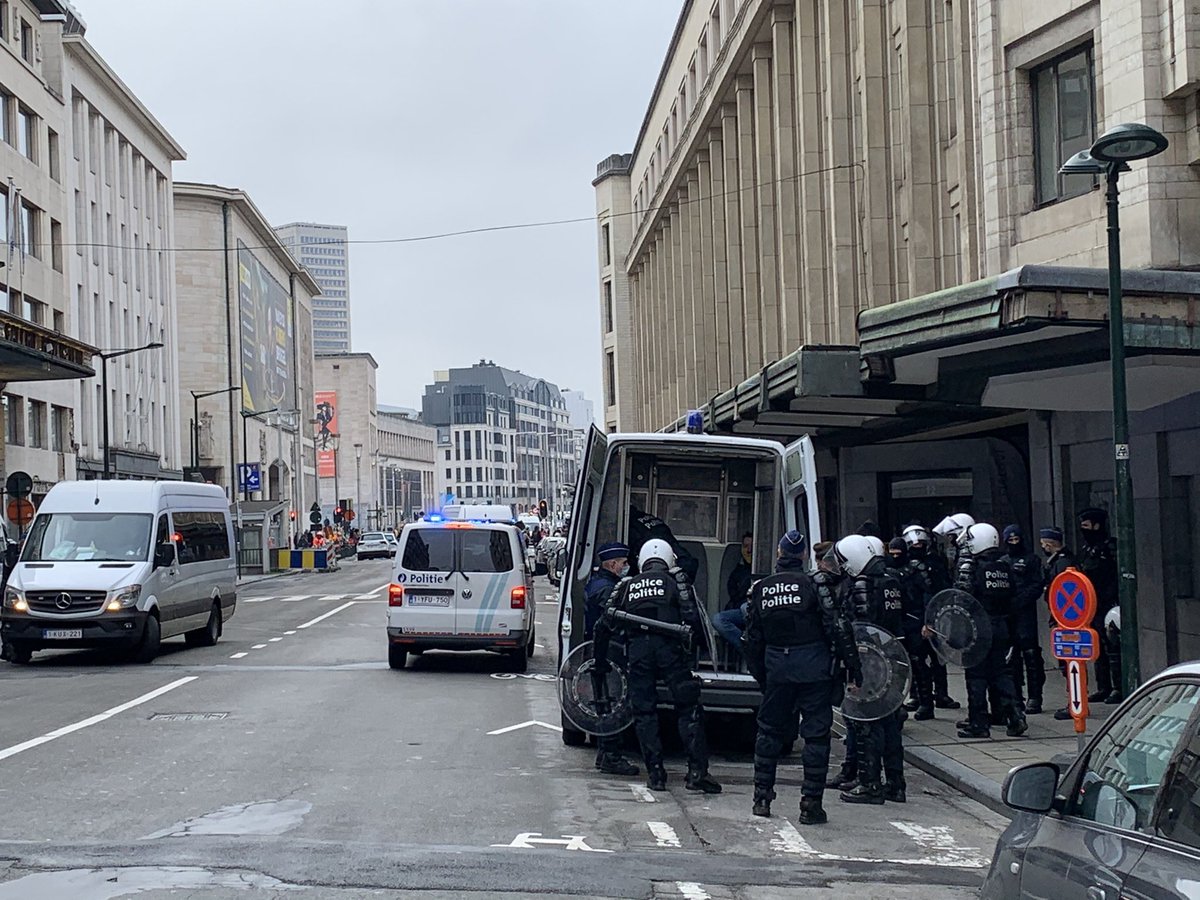 Gros déploiement policier à la gare Centrale de #Bruxelles pour contrôler la manif interdite contre les mesures corona @lesoirpic.twitter.com/z2ZViYiF8U