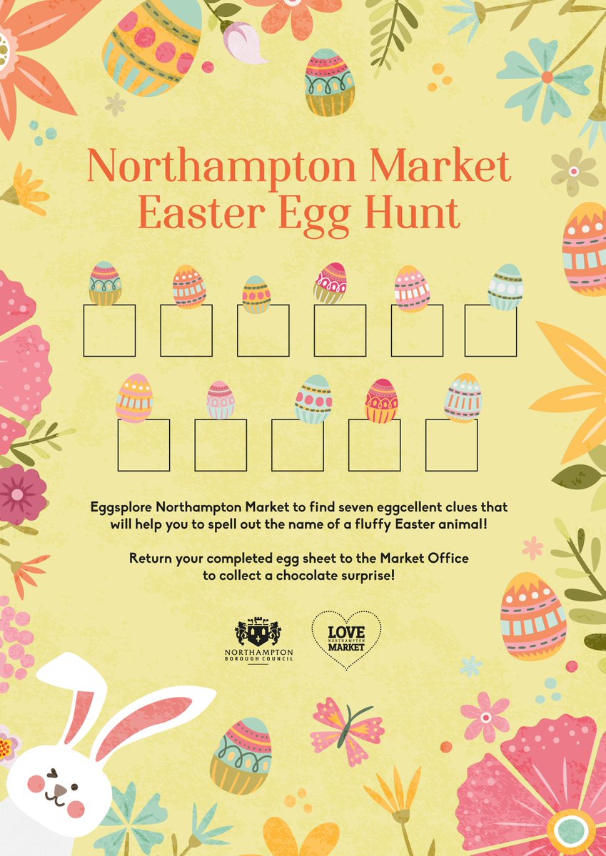 #Easter Egg Hunt is returning to the Market Square this Saturday. Drop by from 11am to pick up a clue sheet and hunt down all the egg shaped clues you'll need to name a famous Easter animal and win a chocolate surprise!pic.twitter.com/cxiGF9F76v