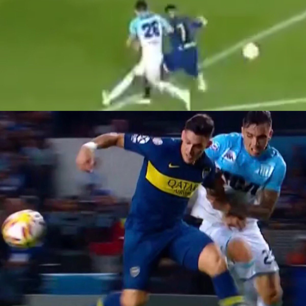 Ambas son finísimas, de “misma línea”. Ambas son offside al adelantar un solo cuadro. En ambas, el cuerpo inclinado resalta x atrás del defensor para visión del línea. En ambas cobraron offside. Una se consideró error grave. Grave es condenar jugadas así, control remoto en mano.pic.twitter.com/nkWTKxEnEG