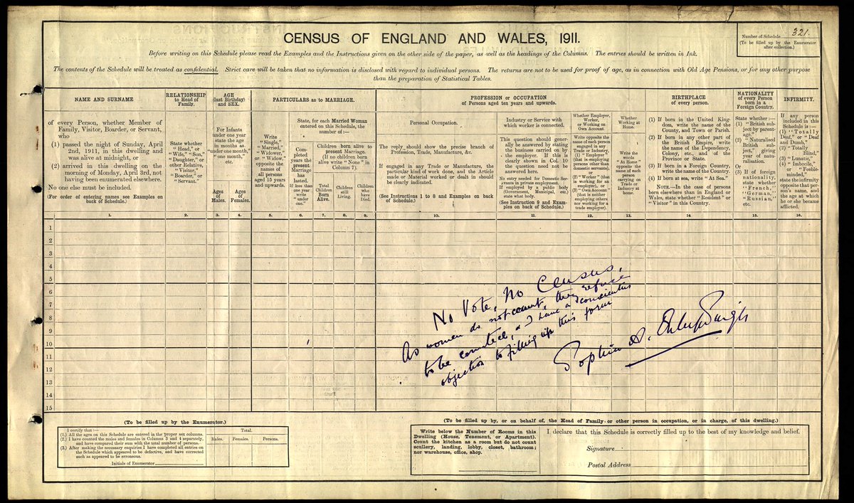Sophia Duleep Singh boycotted the 1911 census, along with many others; ‘as women do not count, they refuse to be counted’