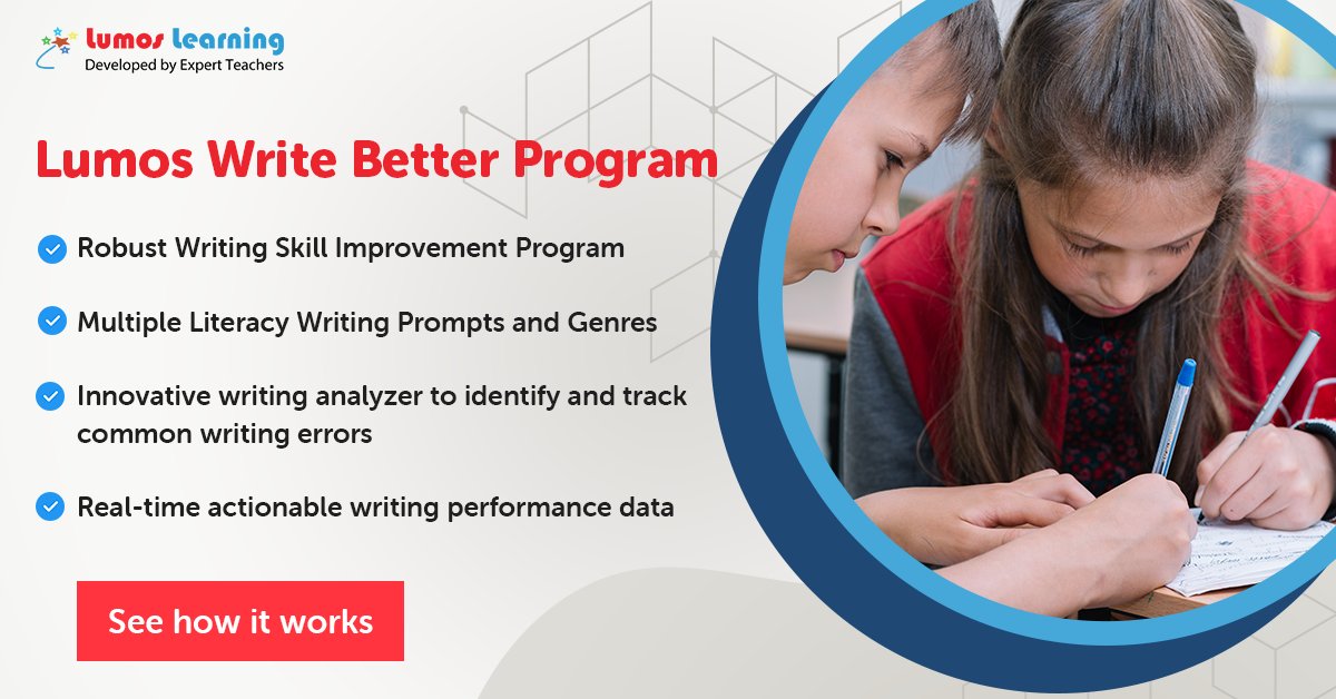 Write Better by Lumos Learning, Is a Comprehensive and Robust Writing Skill Improvement Program developed by expert educators to help students improve their writing skills and excel in the high- state assessments. Get Started: http://www.lumoslearning.com/a/writebetterprogram …