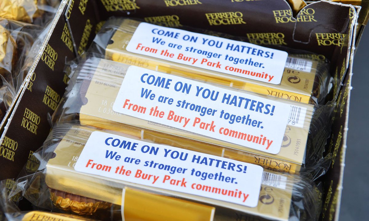 Members of the Bury Park Muslim community handing out free gifts to Hatters right now, celebrating the positive relations with the Club