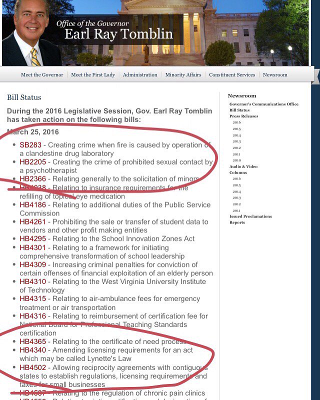 #WestVirginia Gov Tomblin signed both my bills yesterday!pic.twitter.com/2CS2pGapLu