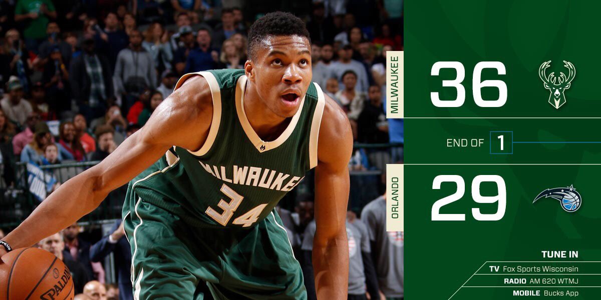 Malcolm has 10 points and Giannis has 8 to lead the Bucks after one.