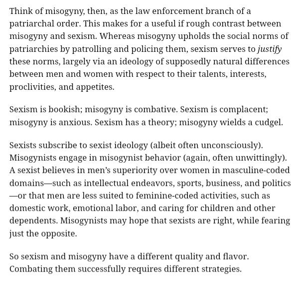 Misogyny enforces gender roles, sexism justifies these gender roles, largely via an ideology of innate differencehttps://twitter.com/LyssAnthrope/status/917991009442811904 …