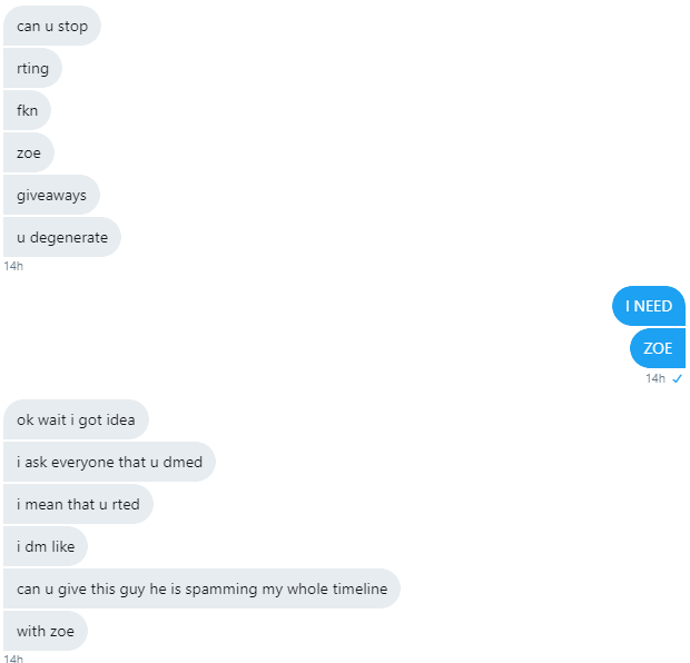 The funny thing is, it wasn't even me, he's actually just mad that his whole timeline is me spammin zoe LOLpic.twitter.com/ca71DQskUV
