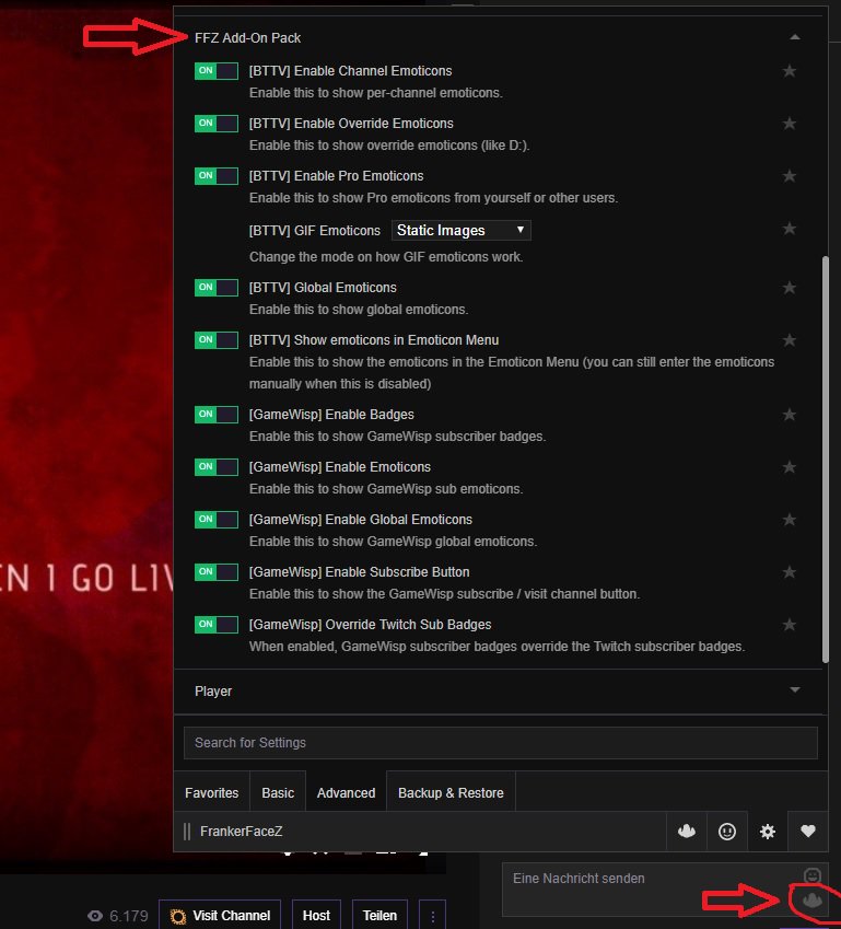 1/2 Klar: Nach der Installation von FFZ und dem FFZ Add-On Pack, klickt ihr auf das FFZ Symbol und klickt dann beim Zahnrad auf Add-On Packpic.twitter.com/o43Rj4VIv4