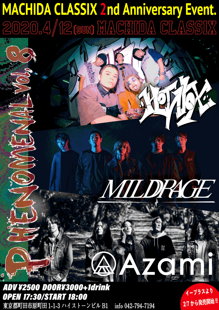 【new info!!】 4/12 町田CLASSIXにて行われる、町田CLASSIX 2 YEAR ANNIVERSARY “PHENOMENAL Vol.8” に出演決定しました! w/ Azami HOTVOX ↓チケットの取り置きはコチラ↓ http://mildrage.com/schedule/ pic.twitter.com/GRRFOxFVBw