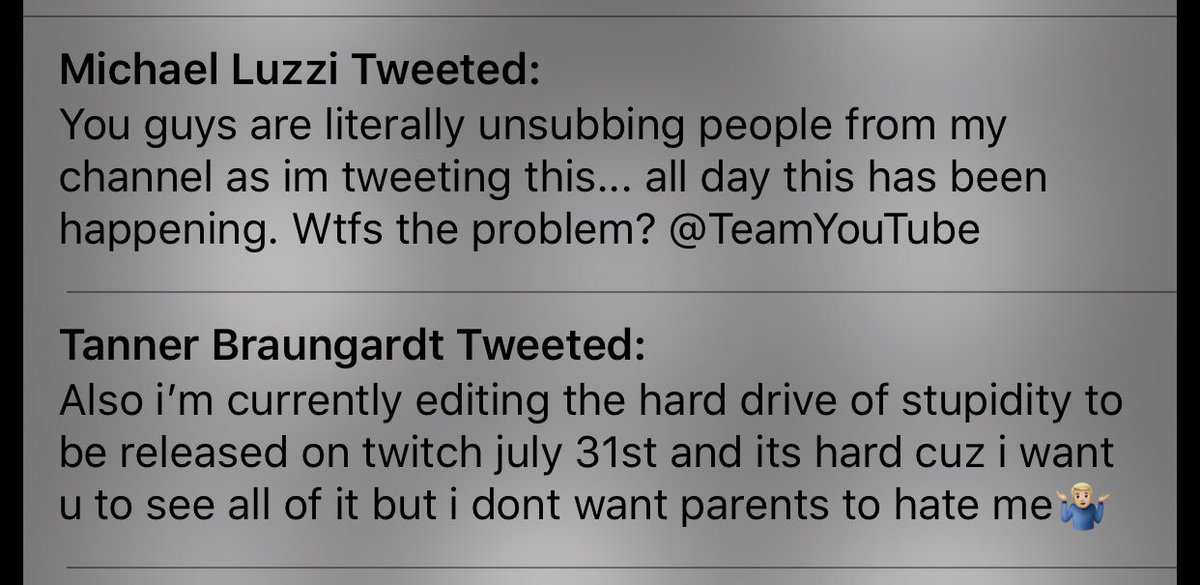 remember when @youtube was a place to express yourself without the man telling you what/what not to do; it was all about you. now creators have to take out, censor and/or not put in at all in videos. people r going to leave your platform. & stop messing w/ people’s subscriptions.pic.twitter.com/2MyhueWmMv