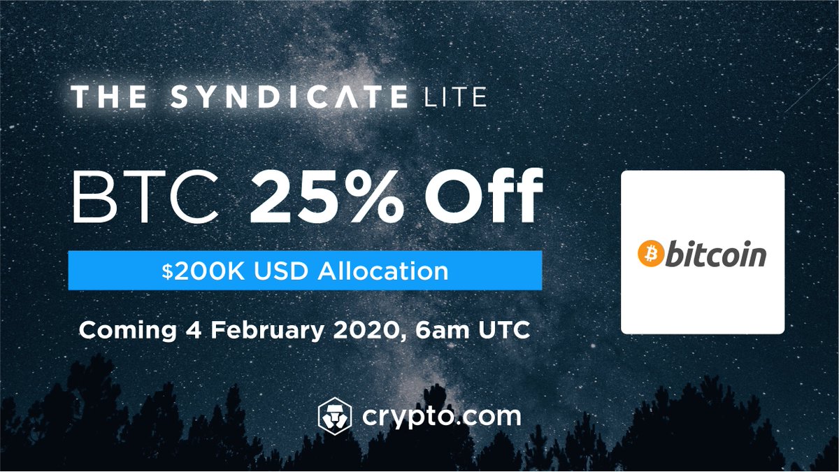 Introducing Syndicate Lite: weekly events for CRO stakers. First event is coming 4 Feb - US$200k of BTC at 25% off! Stake CRO on the http://Crypto.com Exchange to participate! More here - https://blog.crypto.com/the-syndicate-lite/ …