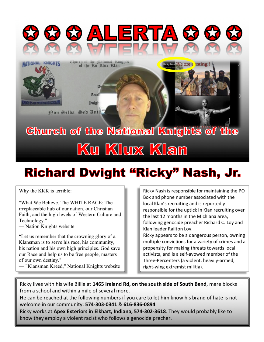 THREAD ---vvv--- In May 2001, the local Klan, the remnants of Venable's Stone Mountain Klan, held a rally in South Bend, Indiana - the last in a series of rallies in the Michiana area. They were shouted down and chased out of town by the a loose collection of activists ...