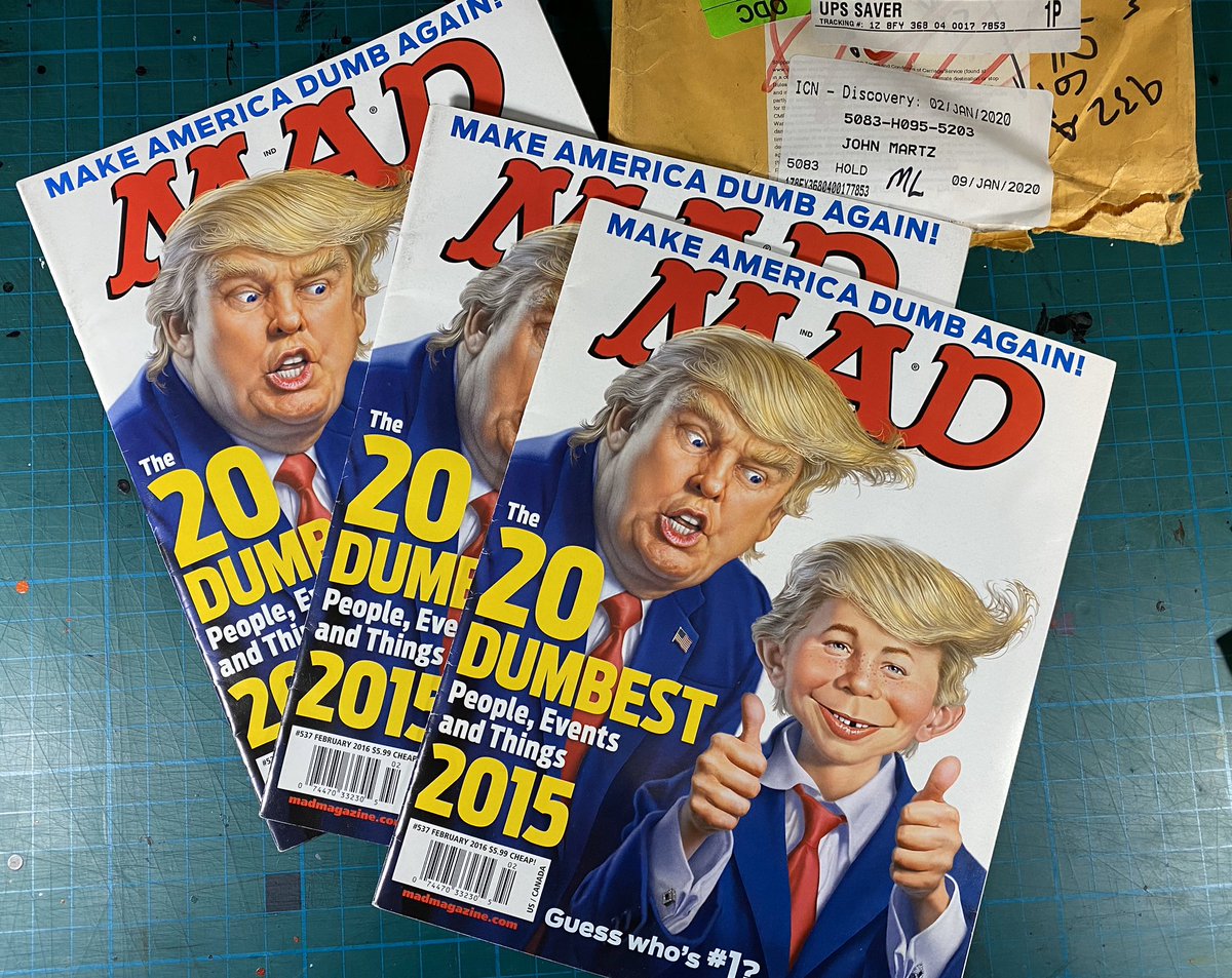 It’s here! We have MAD #11 in our hands! It's been a year for the books in MAD’s long published history, and we can hardly believe we got our 20 Dumbest of 2019 issue to the printers. It wouldn’t have been possible without the outcry of support from truly MAD fans far and wide.pic.twitter.com/gWpPdnDDxf