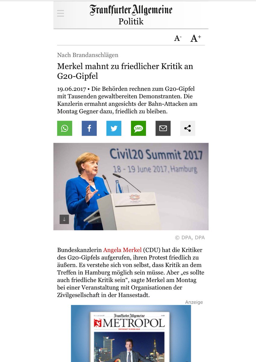 الصحافة الألمانية تتحدث عن احتجاجات واشعال نار في بعض محطات القطار، ينظمها اليمين المتطرف قبل قمة العشرين، والمستشارة الألمانية تحذرهم