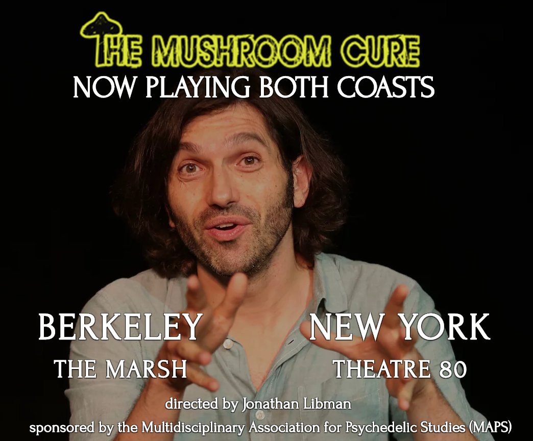 @TheMushroomCure opens at@ILoveTheMarsh in Berkeley, Calif., this Friday! The true story of comedian@AtomStrauss 's attempt to treat his severe OCD with#psychedelics has been playing off-Broadway in NYC. Tickets for both coasts are available at http://themushroomcure.com .pic.twitter.com/36KIgFQg4S