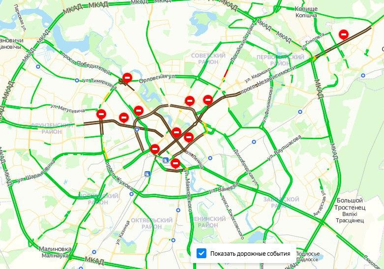 Все центральные улицы Минска перекрыты. Скриншот: @MBKhMediapic.twitter.com/dY1AAWitiK