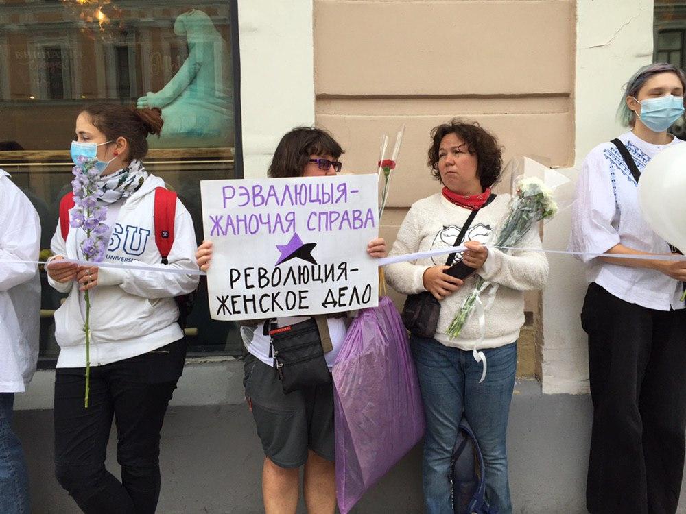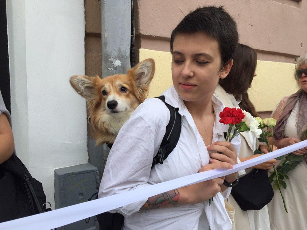 Нодовцы пожаловались полиции на Марию Алехину, которая стоит в цепи солидарности с белорусами. Видео:
