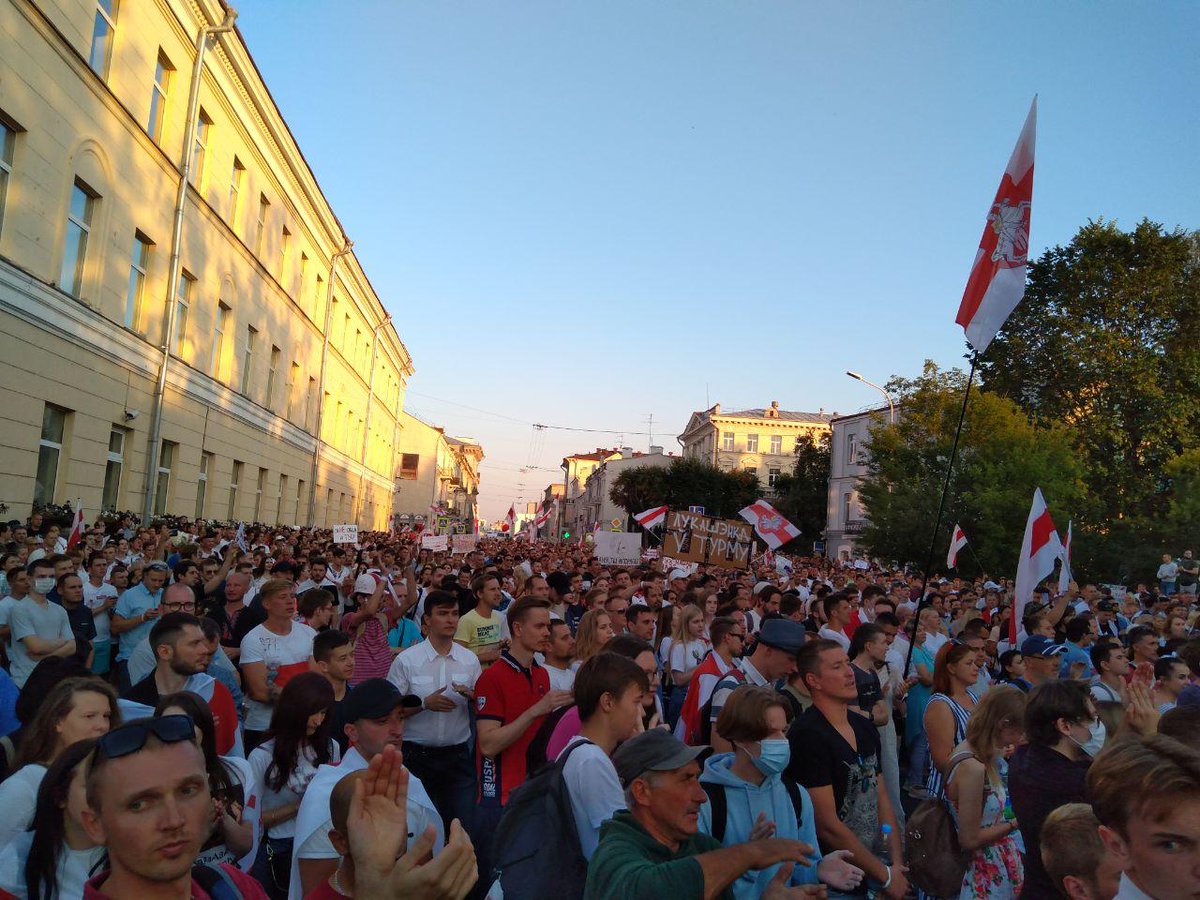 Несколько тысяч человек от площади Независимости пошли в сторону СИЗО-1, где находятся Тихановский Статкевич и Северинец. Видео: @MBKhMediapic.twitter.com/unrxPEzLl2