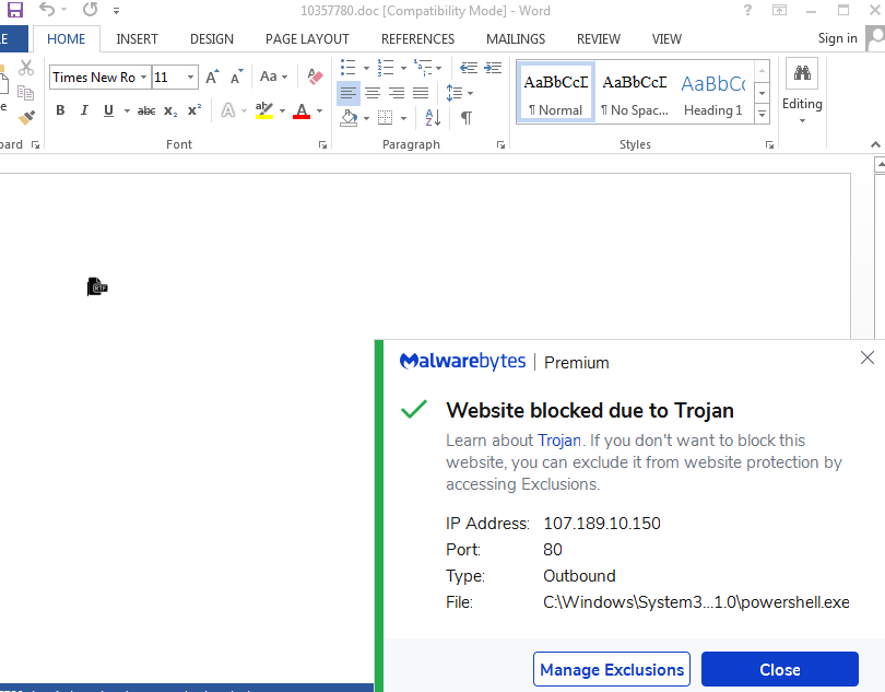 #malspam distributing#AgentTesla via Word/Excel combo, followed by PowerShell -> fake image Subject: eFAX Message from #[0-9]{8} Payload URL: 107.189.10[.]150/ui/10357780.jpg Payload hash: 7ca62123dabe70a6419aec5cbb2244a5be224789beaf4f4356b6cea9b29df7a7pic.twitter.com/hYi5sKyMBq