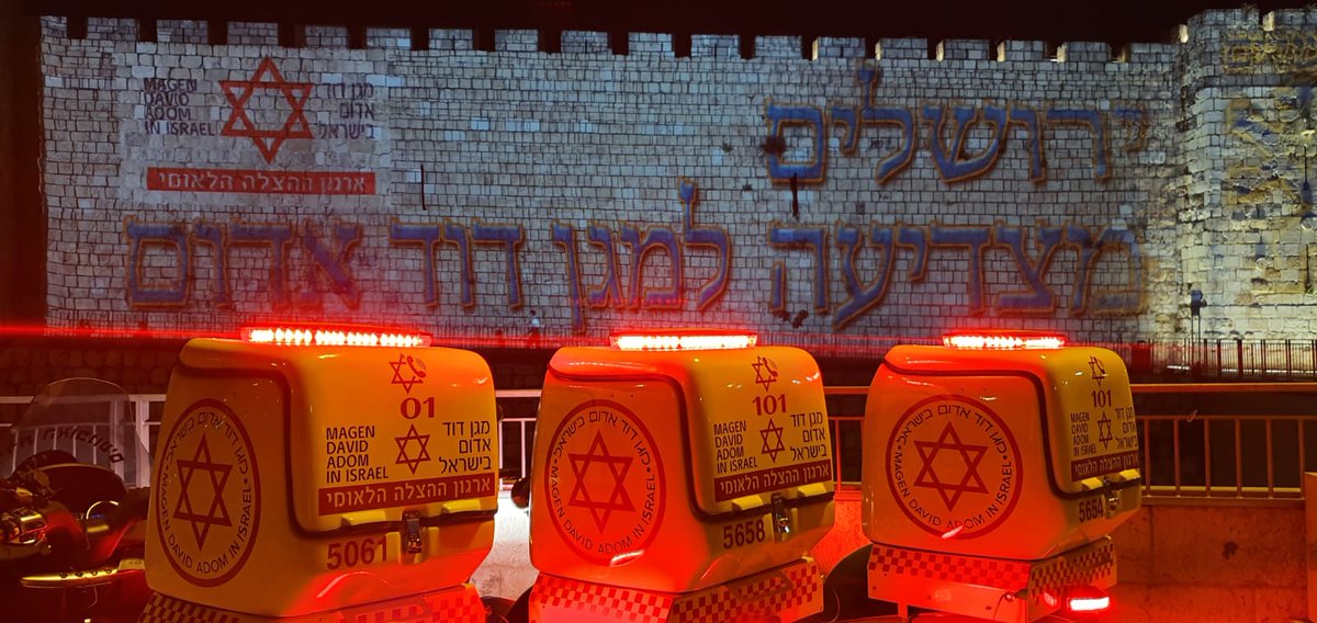 Beautiful recognition from the city of #Jerusalem, where the walls of the Old City were lit up with the words 'Jerusalem salutes Magen David Adom'