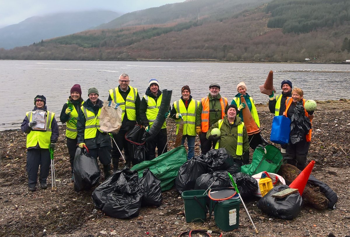 #YCW2020@mcsuk#beachclean at Arrochar. This photo shows the clean-up team after just 1 hour - having already collected traffic cones, piping, glass and countless plastics. Help us curb this problem and#StopTheDrop