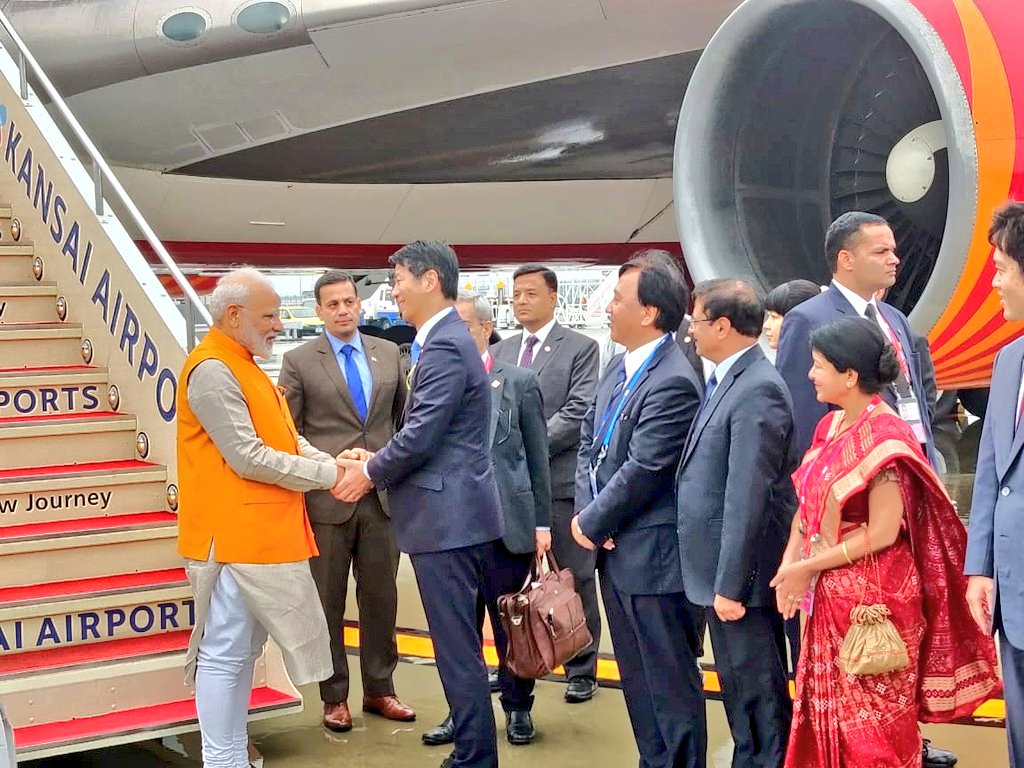 @narendramodi arrives at Kansai International airport in#Osaka to attend the#G20summit