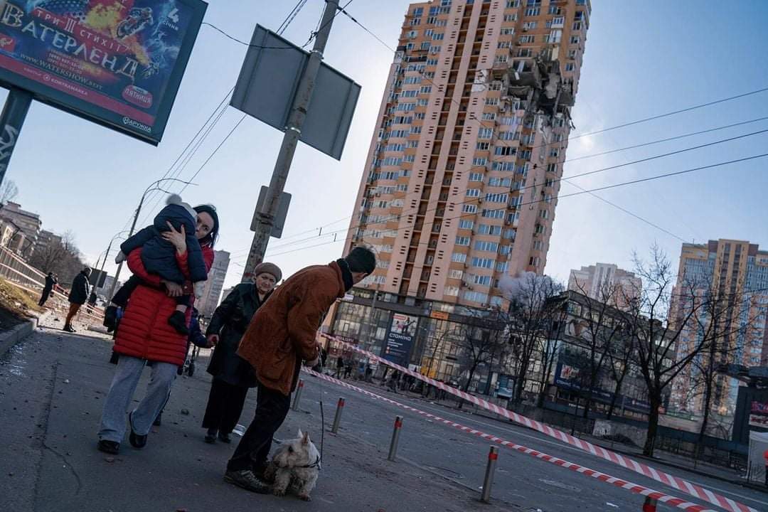 Russia continues shelling of Ukrainian cities. Direct strike caused fire and destruction of a residential building in Kyiv early this morning.pic.twitter.com/0ZpvPtzKfx