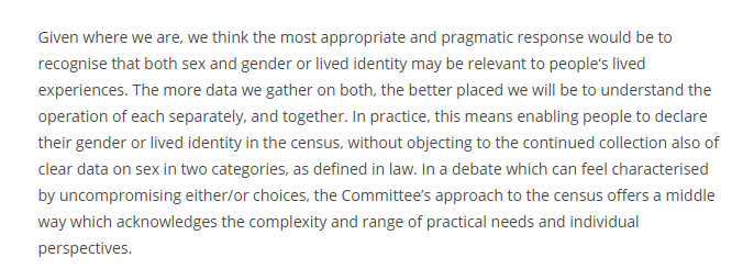 It shouldn't be out of bounds -- Scottish Committee was v.good on relationship between census data & Eq Act protected characteristics showed that ppl can talk about this clearly (compared to debate in Westminster which went into seeing peoples souls!)