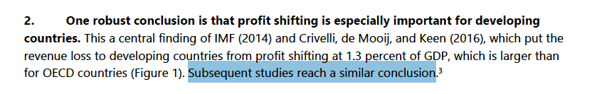 There is a bit of confusion here - they say 'subsequent studies reach similar conclusions' (i.e. that developing countries are particularly vulnerable to profit shifting), but it looks like subsequent studies are confirming this scale.pic.twitter.com/koeIvOrR4Y
