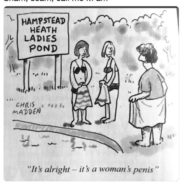 My understanding is that the law only requires 1. Cis women and 2. Trans women with GRC to be allowed into the Ladies Pond. What I've suggested is slightly more generous- anyone with female ID - as there are hard cases and majority of trans people don't currently have a GRC.