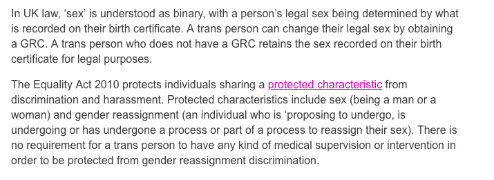 Clearly women can identify as transgender too 🙄. As the EHRC has clarified sex (not gender identity) is a protected characteristic in the Equality Act. https://www.equalityhumanrights.com/en/our-work/news/our-statement-sex-and-gender-reassignment-legal-protections-and-language …pic.twitter.com/4h5k5jmhr9