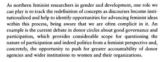 Also the authors had a point , about NGOs, women's orgs, and donors being accountable to women as they go about reconceptualising them ....