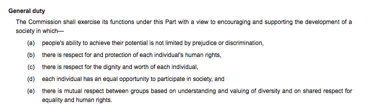 protect and promote equality and human rights in Britain based on the law: the Equality Act 2010 and European Convention on Human Rights