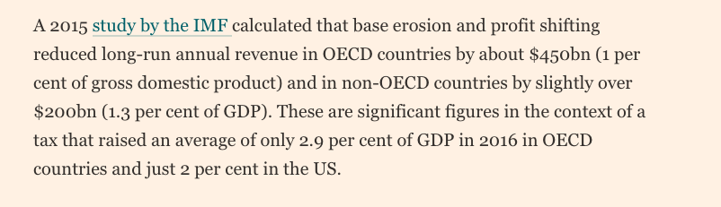 I've written about the IMF working paper ( Crivelli, De Mooij & Keen) before -- its a high end estimate and its not based on economic fundamentals. Its about 5x bigger than the OECD's BEPs estimate for examplehttps://www.cgdev.org/blog/how-big-transfer-pricing-prize-development …