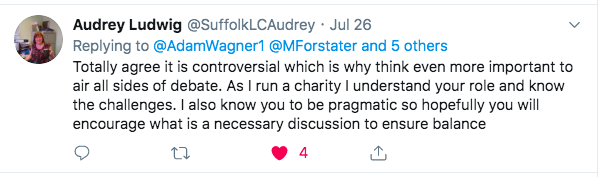 Women in your profession have asked this question of you, as a trustee of an educational charity whose object is to promote understanding of human rights -- in dozens of polite ways over the past year.pic.twitter.com/AbYFCyIABq