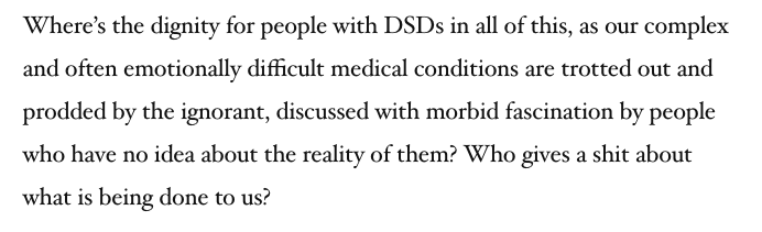 I feel this debate often fails to recognise the more urgent issue of violence & oppression to/ of people born different in SD? Assignment for them can involve *forced* genital amputation to make them culturally "acceptable". It can be no more medically required & as harsh as FGM.