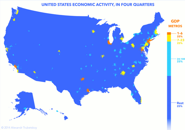 Wow! RT @conradhackett: 1/4 of all US economic activity occurs in each color zone