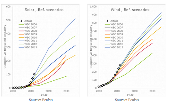 Fab graph: @IEA World scenarios keep underestimating growth of solar and wind pic.twitter.com/vjj2W9s1Xy